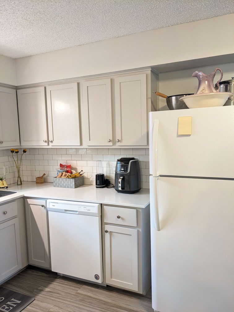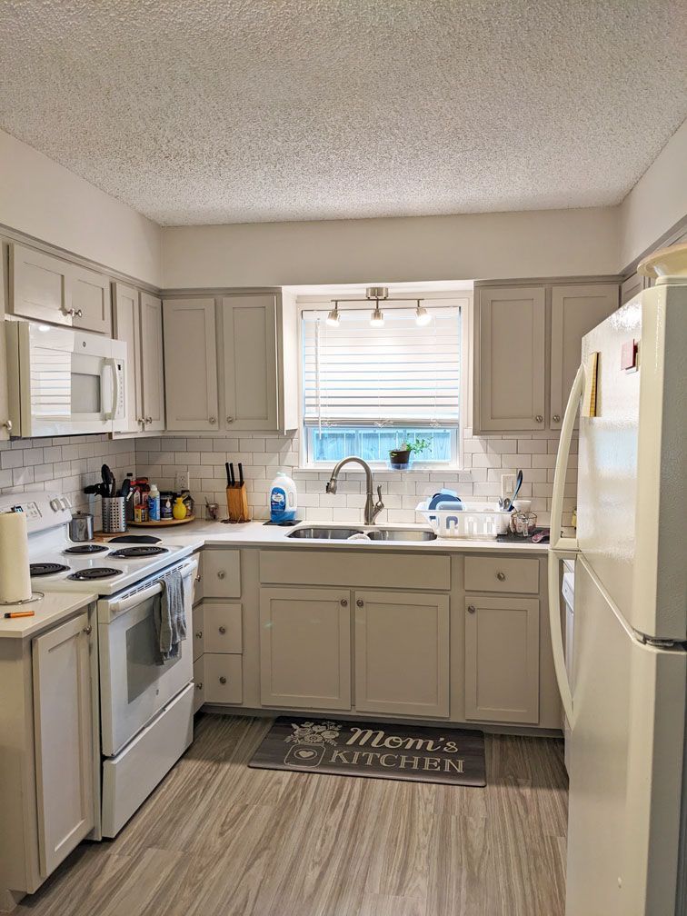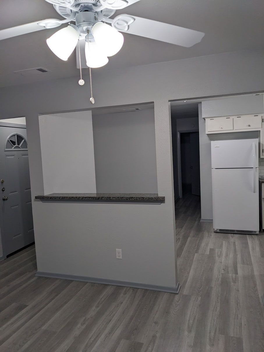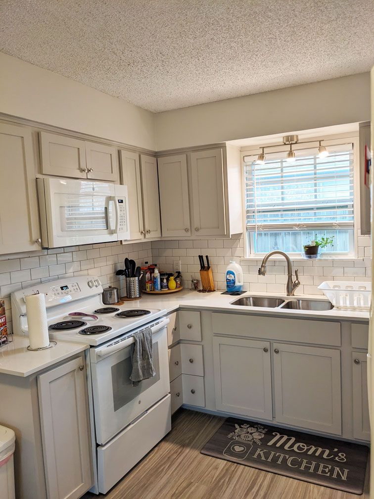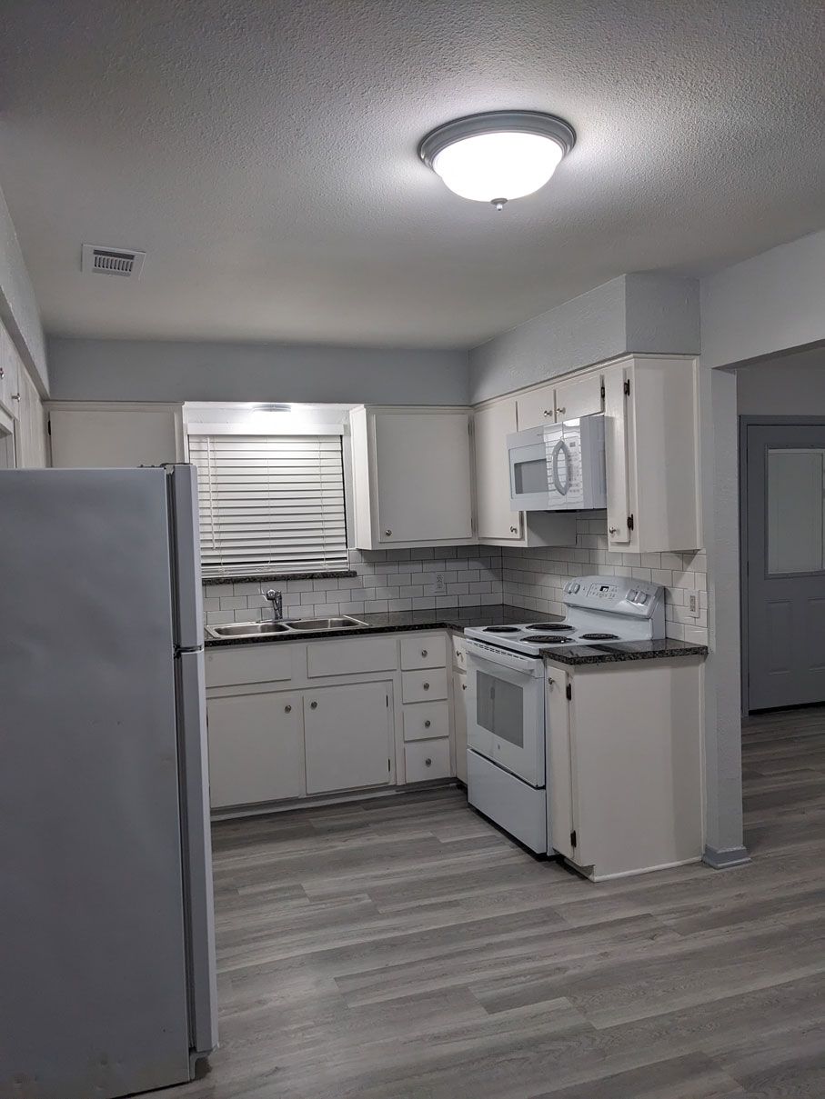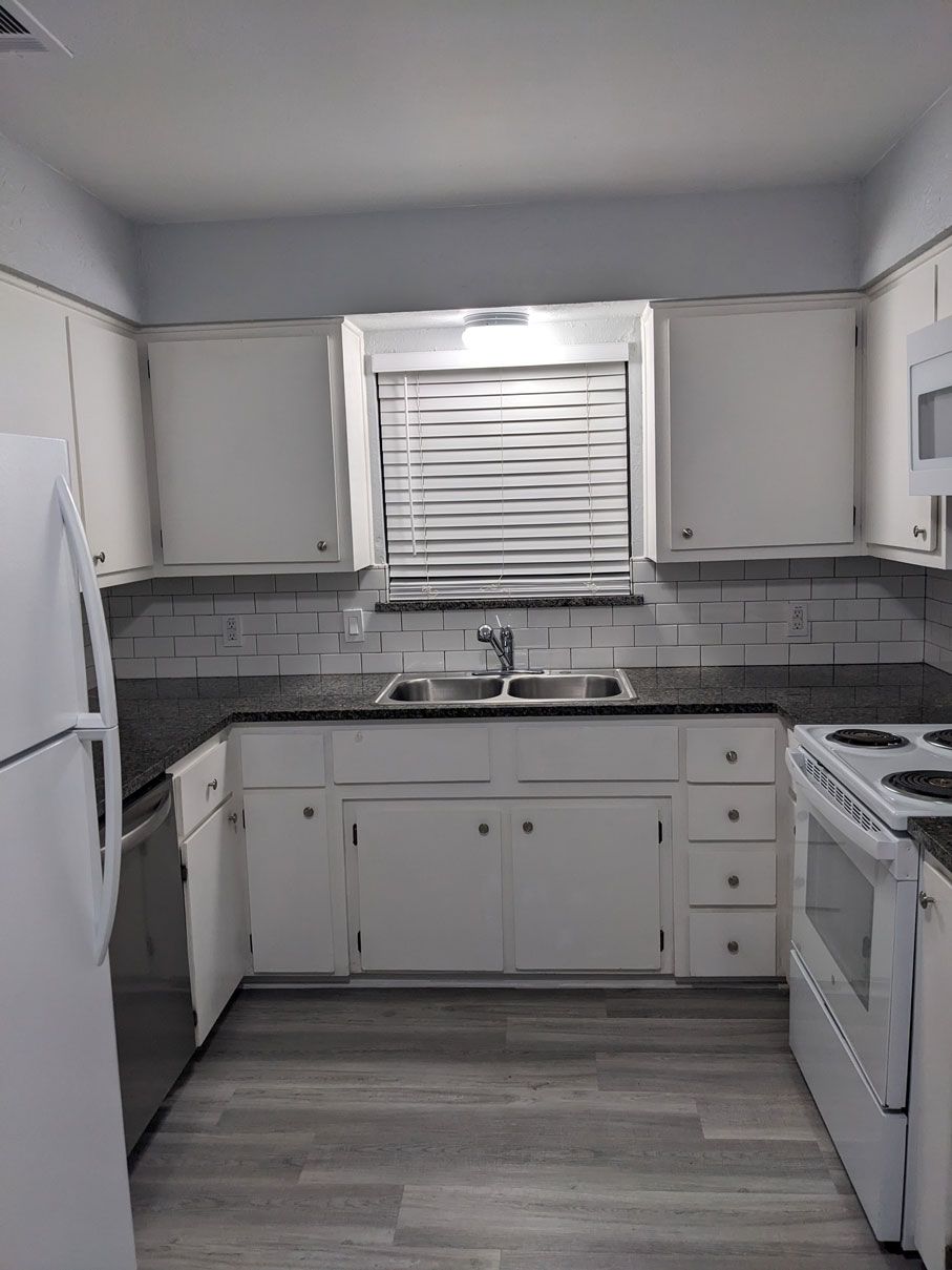 Recently remodeled bath, laundry room, breakfast area and living room which opens onto a cozy patio with privacy fence. Kitchen is furnished with cooking range, refrigerator and microwave. Lawn service is provided.